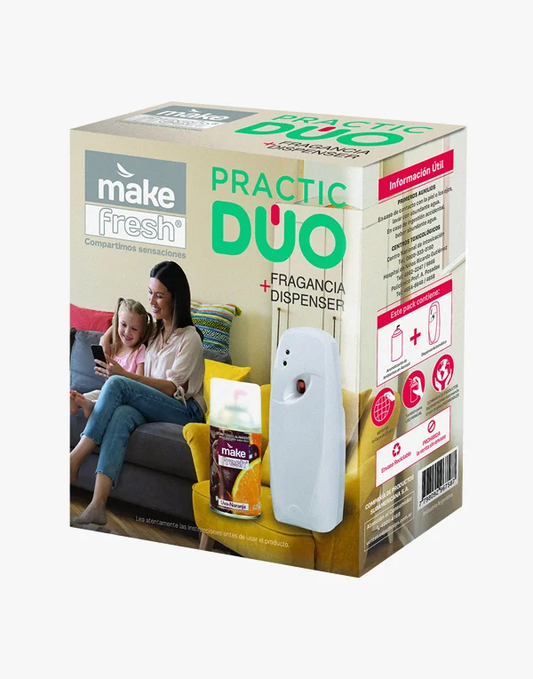 Un combo perfecto para ambientes perfumados que salen al encuentro de tus sentidos. El Dispenser Analógico Make Fresh se combina con una exquisita fragancia en un pack listo para usar.